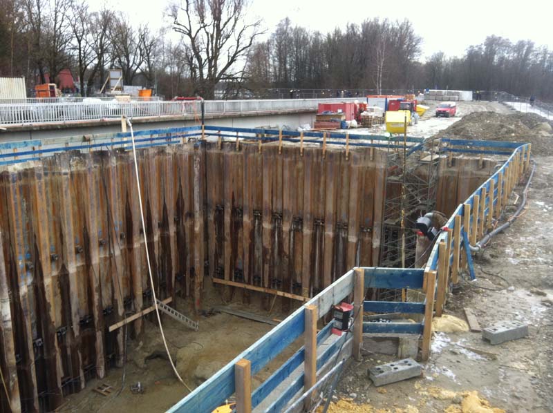 Samstag, 25.06.2012 Unterhalb des Hochablasses wurde mit der Einsäumung der späteren Platteaufläche begonnen. Es wurden Pläne für die Fußgängerumleitung ausgehängt.