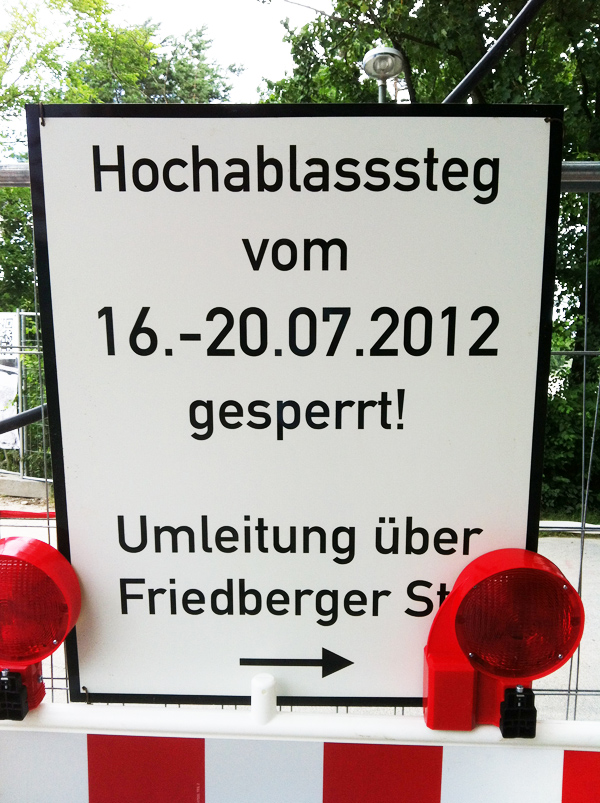 Dienstag, 17.07.2012 Der Hochablasssteg bleibt bis zum 20.07.2012 gesperrt. Kein Wunder: es fehlt ein Stück! 😉