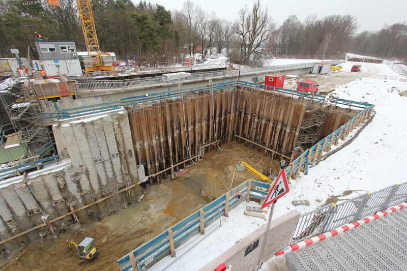 Januar 2013 Seit vielen Wochen gibt es keine großen Veränderungen an der Hochablass Kraftwerksbaustelle zu beobachten. Das Loch wird stets tiefer, witterungsbedingt schreiten die Bauarbeiten langsam voran.